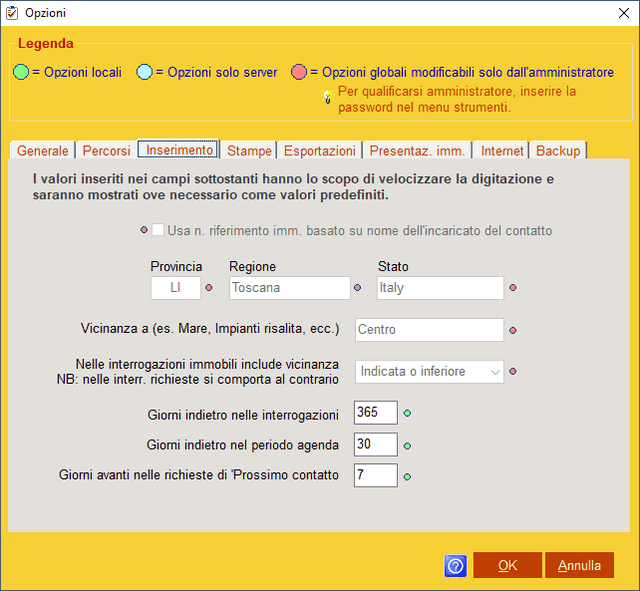 nelle varie finestre. Anche in questo caso serve solo come valore predefinito: