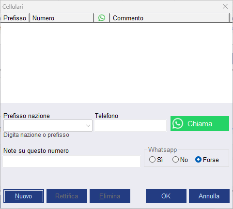 Per modificare un numero: Cliccare il numero dall'elenco in modo che vengano compilati i campi di inserimento, quindi modificare ciò che si desidera ed in finale cliccare Rettiffica.